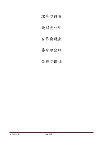 理爭要得宜 錢財要分明 合作要規劃 養命要勤練 聚褔要惜福 嗆浪集 33 輯 Page 357