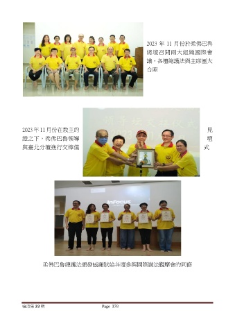 2023 年 11 月份於柔佛巴魯 總壇召開兩大組織國際會 議,各壇總護法與主席團大 合照 2023 年 11 月份在教主的 見 證之下,柔佛巴魯領導 壇 與臺北分壇進行交棒儀 式 柔佛巴魯總護法頒發感謝狀給各壇參與國際講法觀摩會的同修 嗆浪集 33 輯 Page 378